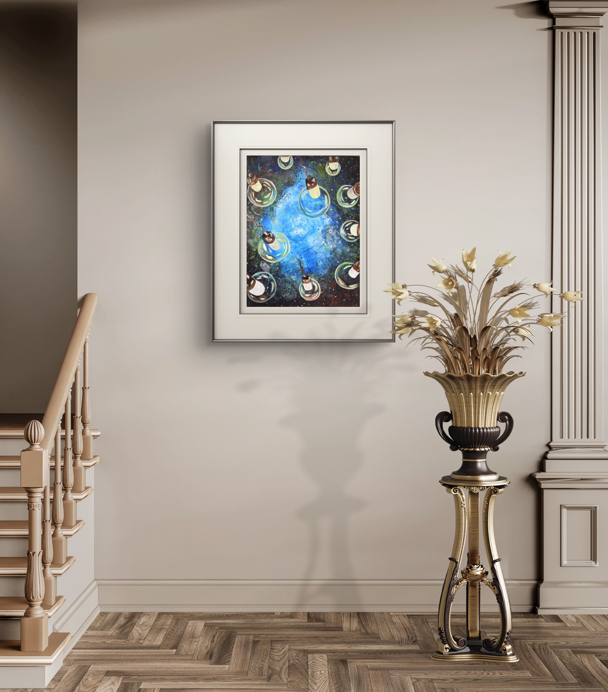 The mockup images show how beautifully this artwork adapts to different interiors—from modern and minimalist spaces to cozy, soulful rooms—proving that even unframed, it becomes a strong visual and emotional focal point.